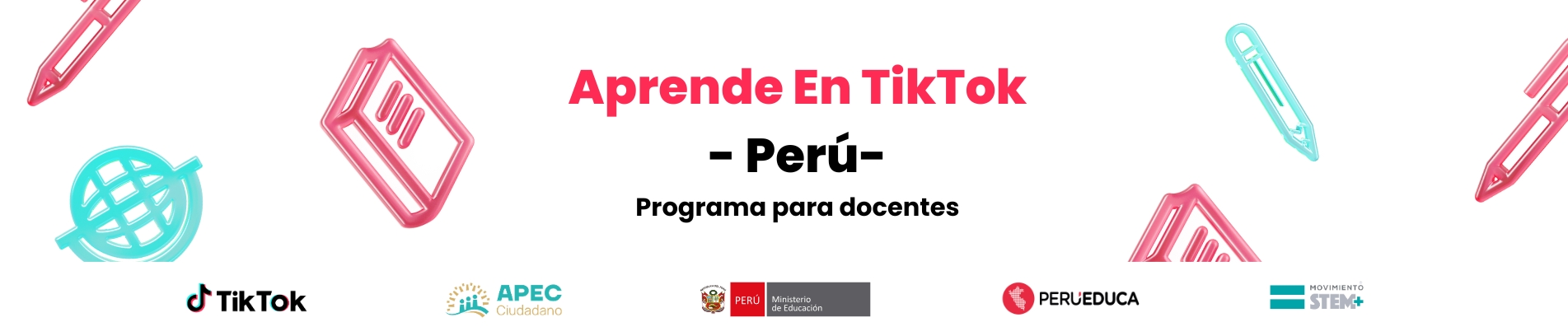 El Ministerio de Educación (Minedu), en el marco de “APEC Ciudadano”, y el programa de becas de TikTok y Movimiento STEM+, organiza el curso virtual “#AprendeEnTikTok Perú”, dirigido a docentes y docentes en formación.